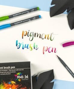 Explore the STAEDTLER pigment arts pen range! The range includes high-quality ✓ brush pens, ✓ soft brush pens, ✓ calligraphy pens and a ✓ pigmented pen with round tip. All pen cases are made from 97% recycled plastic. The sustainable ink pens from the pigment arts pen range include an innovative and outstanding new ink, the so-called Multi Ink, which sets new standards in terms of colour brilliance and lightfastness, and can be used on a wide range of surfaces.