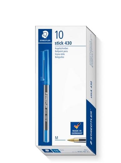 Staedtler Stick 430 M3 Medium Ballpoint Pen Transparent Body, Blue Ink,